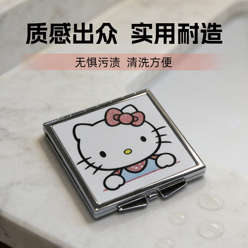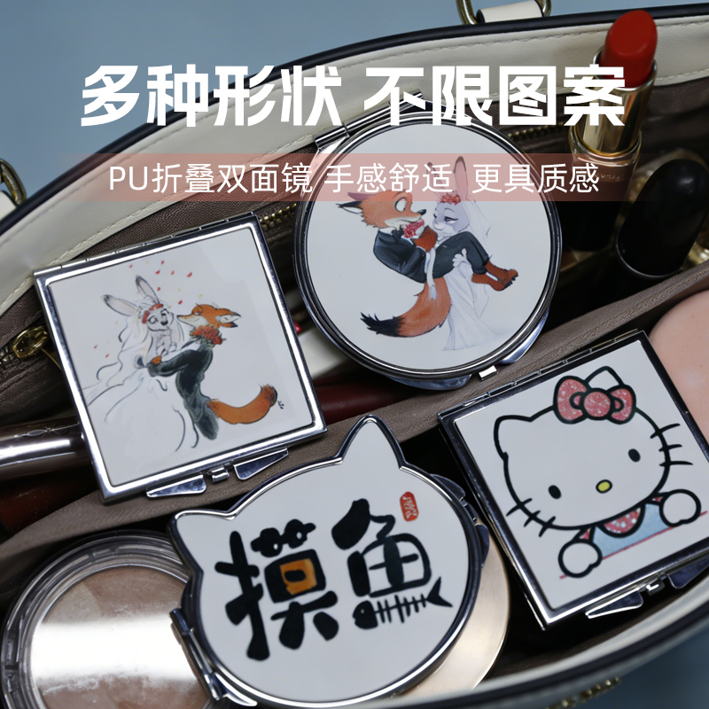 小镜子定制图案PU折叠双面化妆镜制LOGO广告照片折叠金属手持仿皮